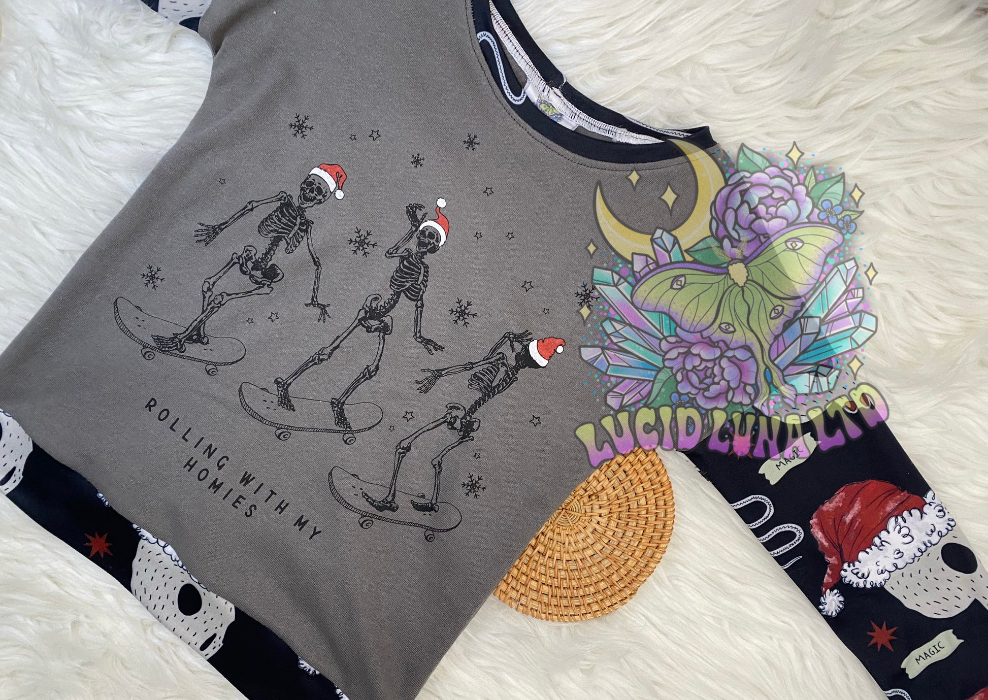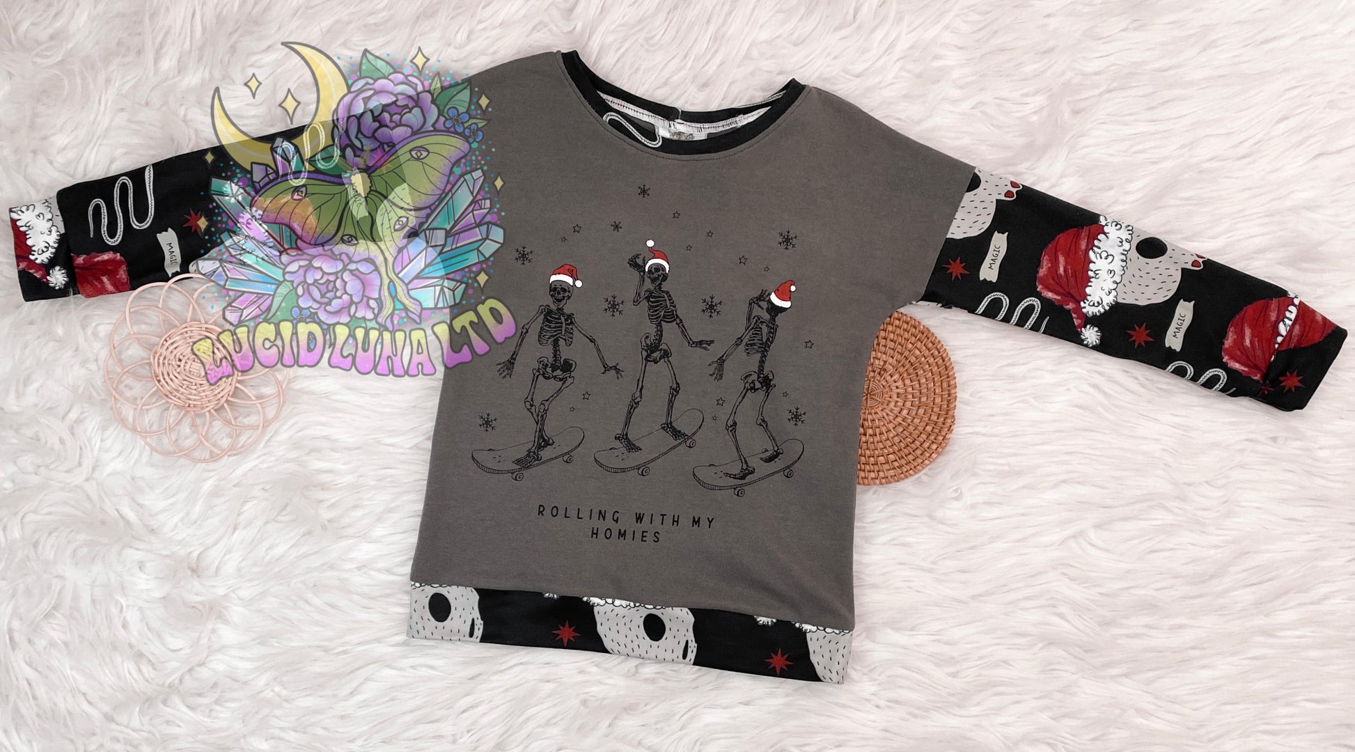 Stay cozy and cool in our 4T Sierra Pullover Upcycle. Made from a 100% cotton upcycled t-shirt and heavyweight DBP, this pullover is perfect for the holidays. With long sleeves and a gender-neutral design, it's the perfect crewneck pullover for all. Plus, with a playful "Creepy Christmas" design, it's sure to add some quirk to your wardrobe!