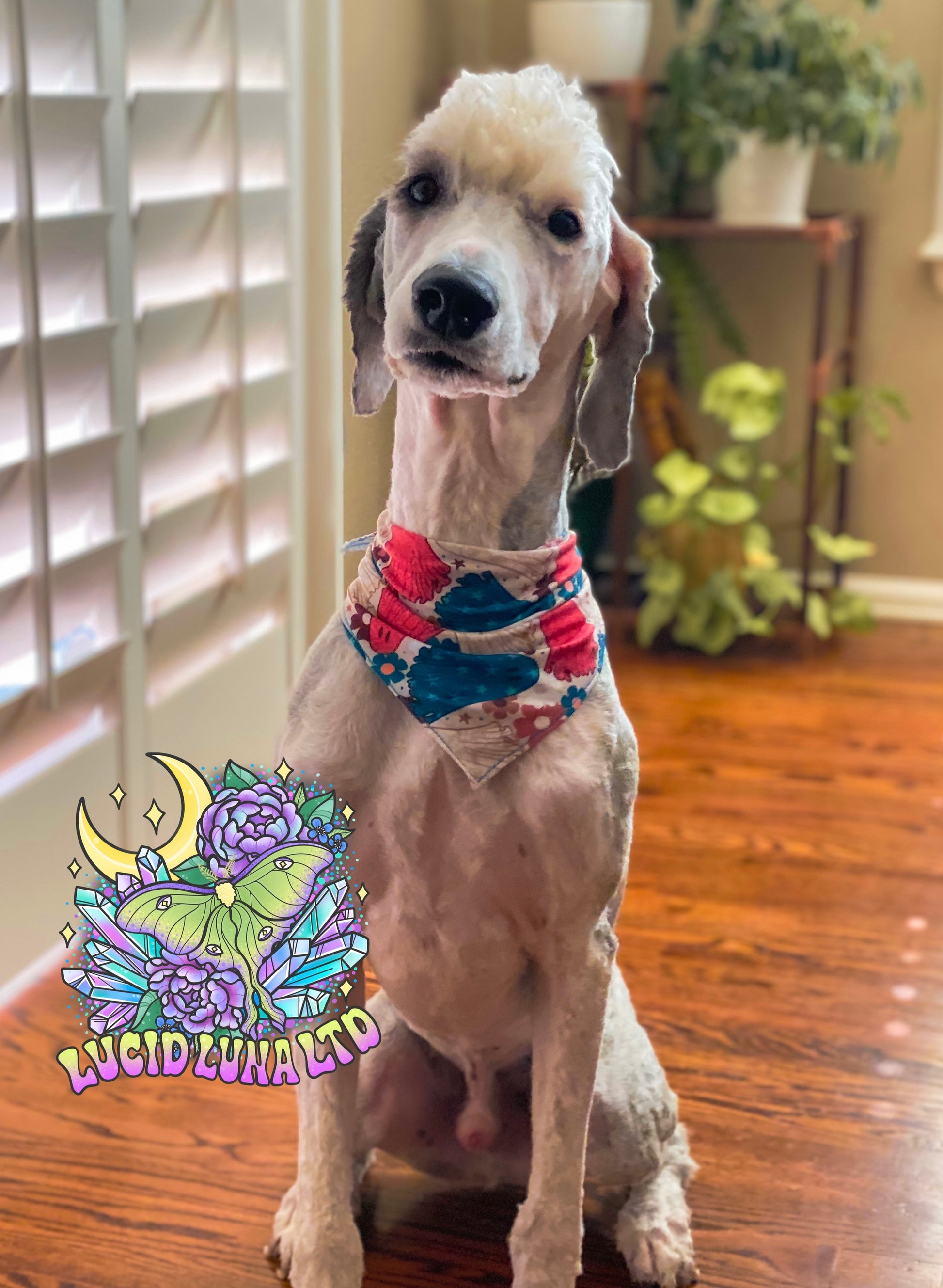 Introducing the Pup Bandana - the pawfect accessory for your furry friend! This doggie bandana is designed to match your custom clothing, making you and your pup the most fashionable duo around. Get ready to turn heads and receive compliments wherever you go with your stylish pup by your side! *If ordering more than one item in more than one print, please specify which item your bandana is meant to match in the notes at checkout.
