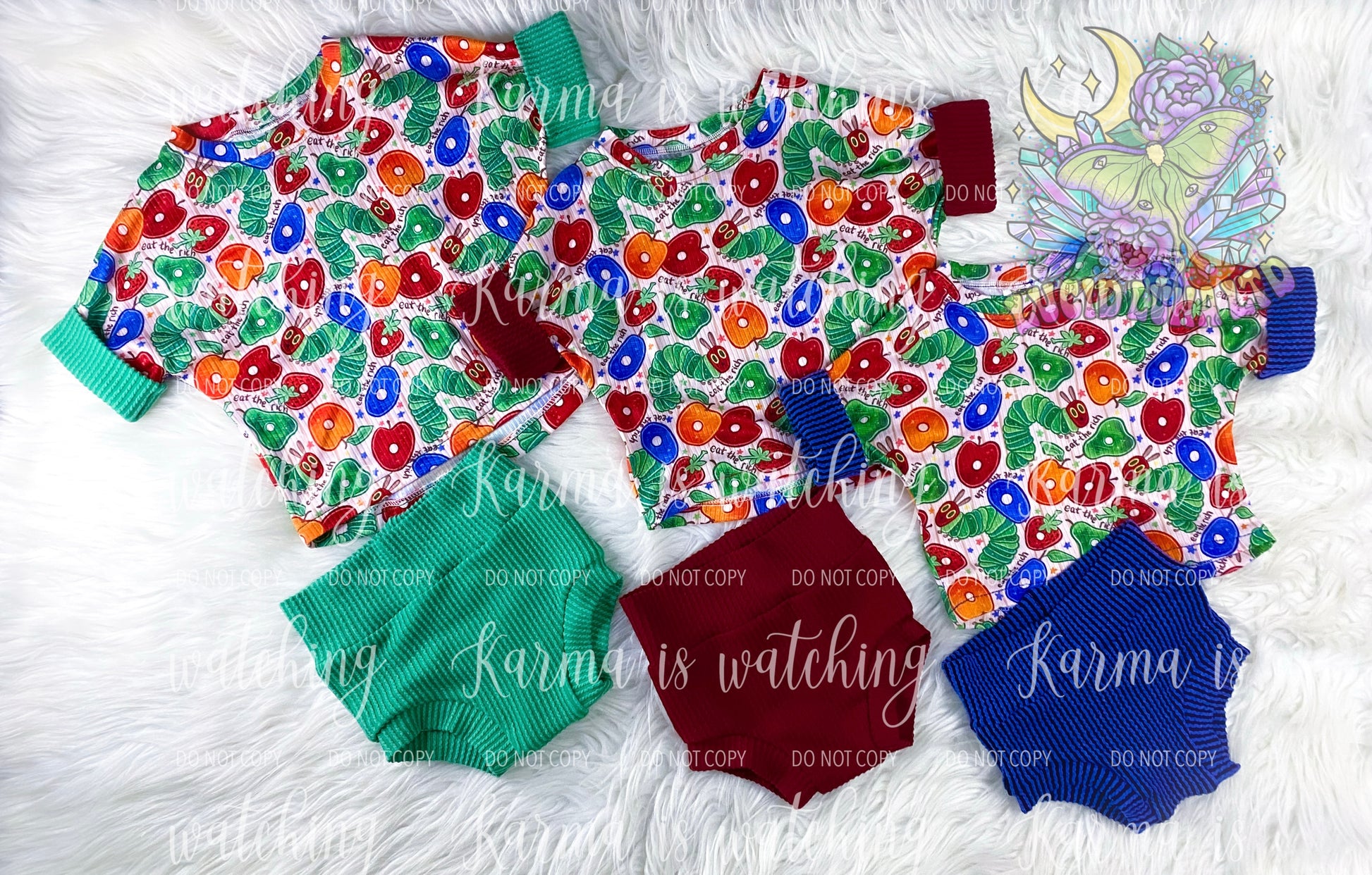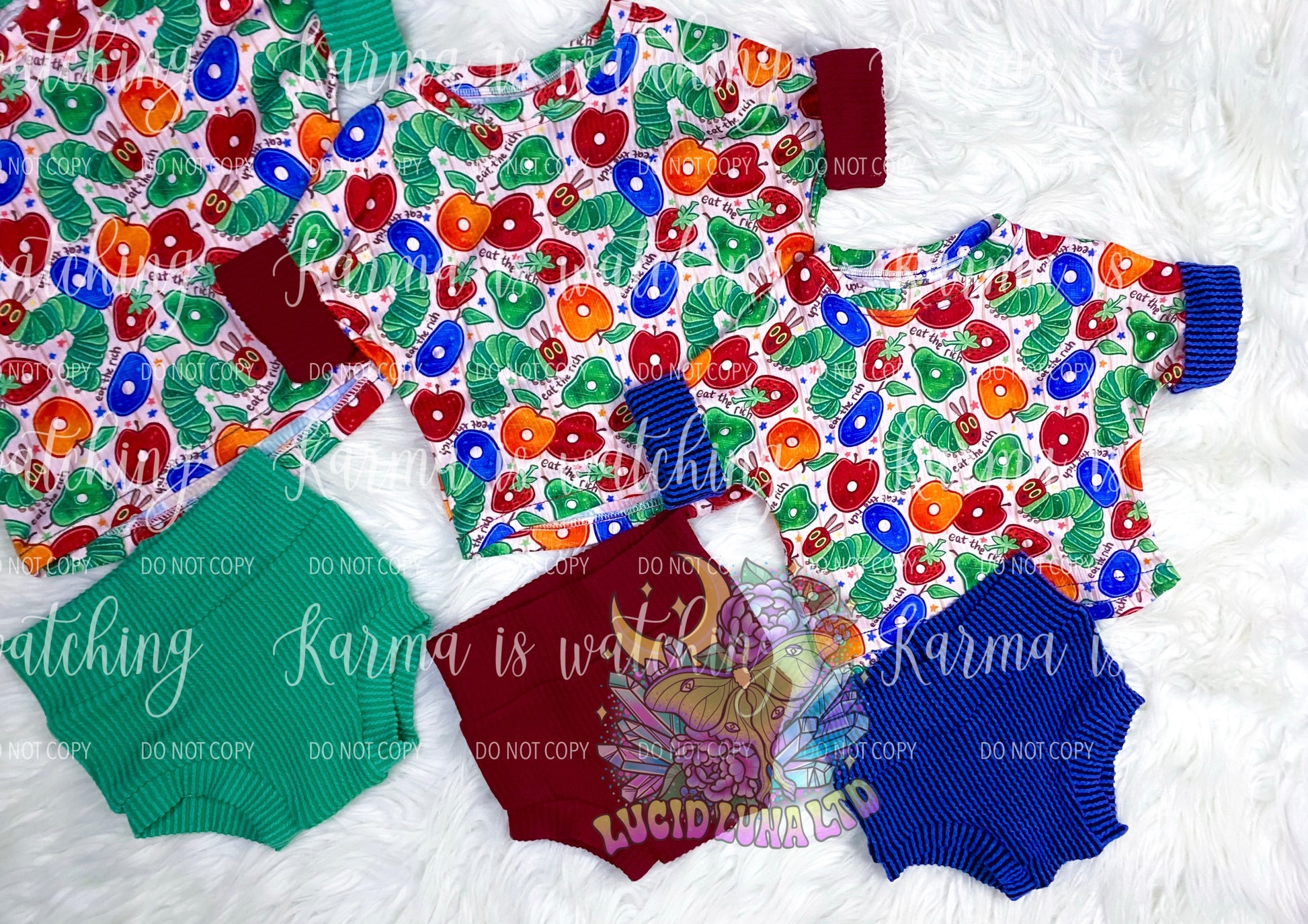 Elevate your little one's style game with our Lounge Tee & Bummies Set. The lounge tee features a custom printed skinny rib knit with Hex Reject’s “eat the rich” twist on a classic children's book. Complete the look with coordinating solid color bummies for a playful and trendy outfit. Ready to ship in three different sizes/colors.